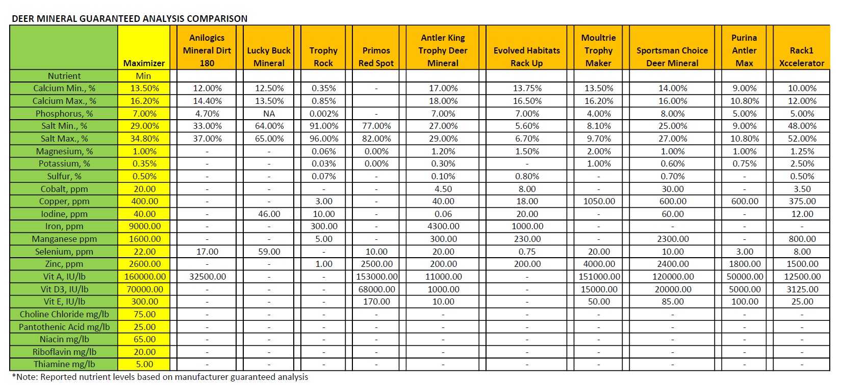 The chart above was designed using data derived from each products “guaranteed analysis” tag and/or website. Real World believes the figures represented on this chart to be as accurate as possible on the day this chart was designed. Please note that these figures could possibly change if a company changes the formulation of their respective product. Real World is committed to helping land managers get the most from the products they use by using education to help them make more informed buying decisions.