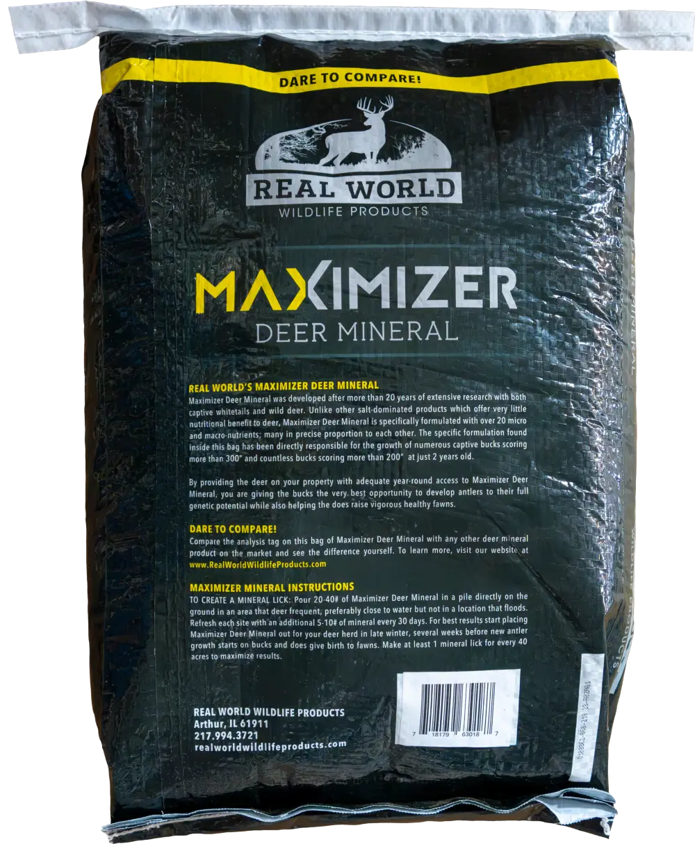 Most deer mineral products on the market WILL attract deer. The difference with Real World Maximizer Mineral is that it can also help support your deer herd’s health, antler growth and fawn production while also drawing them in for your trail camera. Why settle for JUST an attractant when you can support antler growth, fawn production and herd health at the same time?